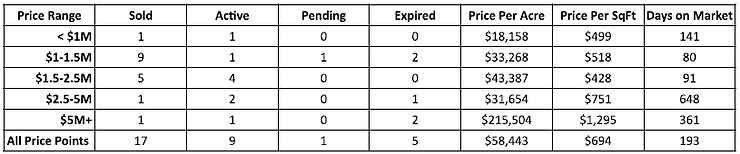 • Most homes that closed in 2023 sold below asking price, some significantly so, with only 4 of the 17 closings at or above asking. Many homes that sold did so after significant price drops (mostly due to initial, aspirational over-pricing).
