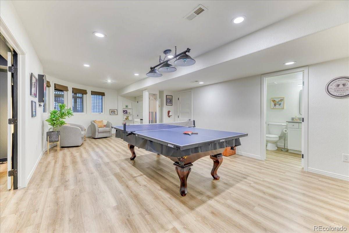 This is one you've been waiting for in Mesa View Estates! A custom layout on a spacious corner lot with a large, private backyard. This 5,080 sq ft home features 5 bedrooms, 5 bathrooms, and a fully finished basement, with exceptional updates throughout the entire home. The inviting entry way leads you to stunning wood flooring on entire main floor and vaulted ceilings. Main floor office with a double-sided fireplace, large windows for natural light offers a perfect workspace. The elegant dining room, with custom tile and double-sided fireplace, flows into the family room, featuring custom stone fireplace and built-in cabinetry. The updated kitchen is a chef's delight; quartz countertops, a gas cooktop, double oven, and commercial size built in refrigerator. Nearby, an eat-in area and updated mudroom. The upper floor offers a highly sought-after layout, featuring four bedrooms! A spacious Primary Suite with refinished oak floors and a rotunda of windows. Enjoy his-and-her walk-in closets with modern sliding doors leading to a luxurious retreat which includes custom tiling, a walk-in water room with a massive glass shower, a freestanding tub, heated flooring, and a spa-like atmosphere. All bedrooms have new carpet, and the hallway bathroom has been newly remodeled. Additionally, the fourth bedroom includes a renovated en suite. Head to beautifully finished basement where there's a spacious media room with acoustic wood paneling, great for movie nights! The expansive family room includes a game area equipped with a pool table, a cozy side area for seating, and a mini bar, making it perfect for entertaining guests. You'll also find a fully updated bathroom, a craft area designed for fun and creativity, a vast gym space ideal for maintaining your daily workout routine, a storage closet, and a charming play cubby perfect for quiet reading sessions. Previously, this area was a large bedroom for teenagers under the former owner. Large finished garage with Telsa charger.